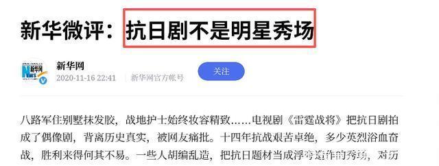 《新华网》更是锐评“抗日剧不是明星秀场”。