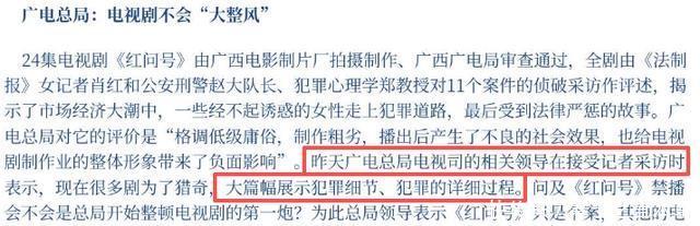 一部剧的剧情固然重要,但是传达的价值观也是同样的重要。 广电总局的领导在接受采访时说:“有些电视剧会为了达到目的,大幅度展示案件的细节和过程。”